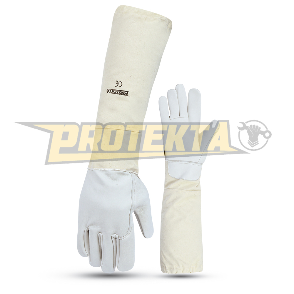 • Professional Beekeeper Gloves With Goat Leather Hands, Reinforced And Ventilated Wrists, Heavy Duty Canvas Sleeves, And Elastic Cuffs
